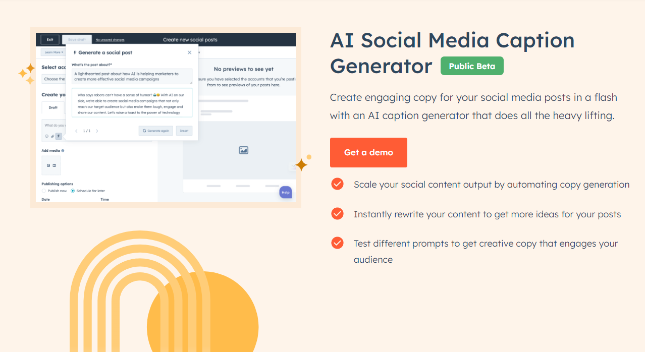 HubSpot helps you save time and scale your content output. This is because it allows you to copy, edit, rewrite, and refresh existing captions as needed.